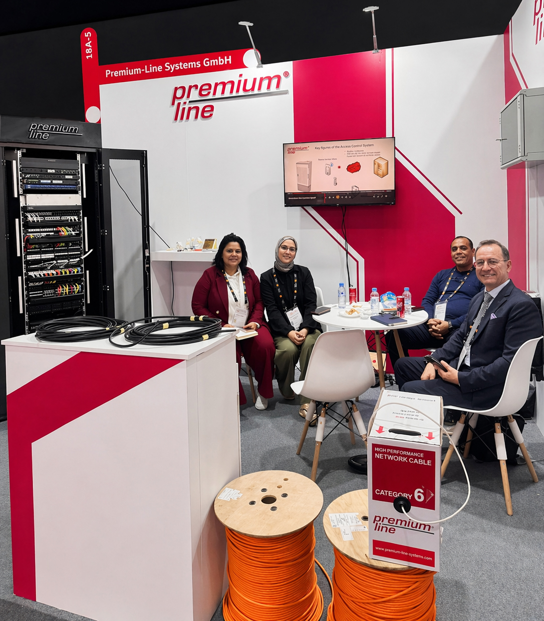 The stand featured a compact yet representative presentation of Premium-Line’s solutions, including copper cabling systems, optical fiber technologies and data center solutions, allowing guests to explore the company’s reliable infrastructure offerings in a practical setting.
